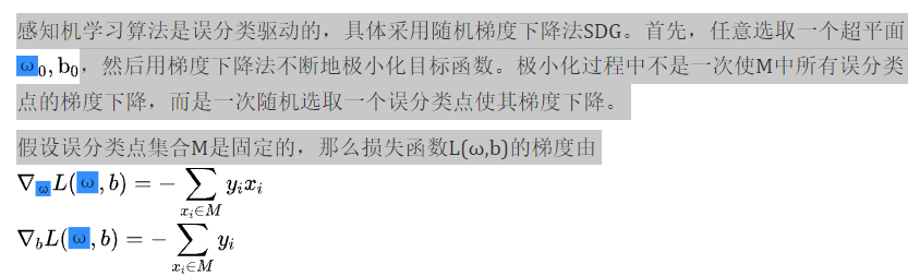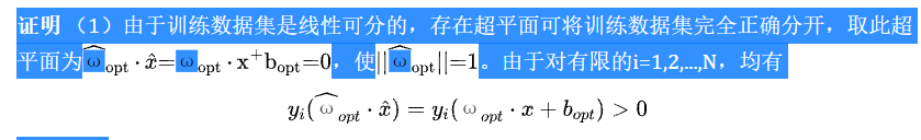 (1)存在满足条件的ω的超平面ωω将训练数据集完全正确分开;且存在γ>0,对所有i=1,2,...,N