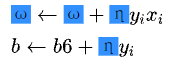 输出:&omega,b;感知机模型f(x)=sign(ω⋅x+b)。