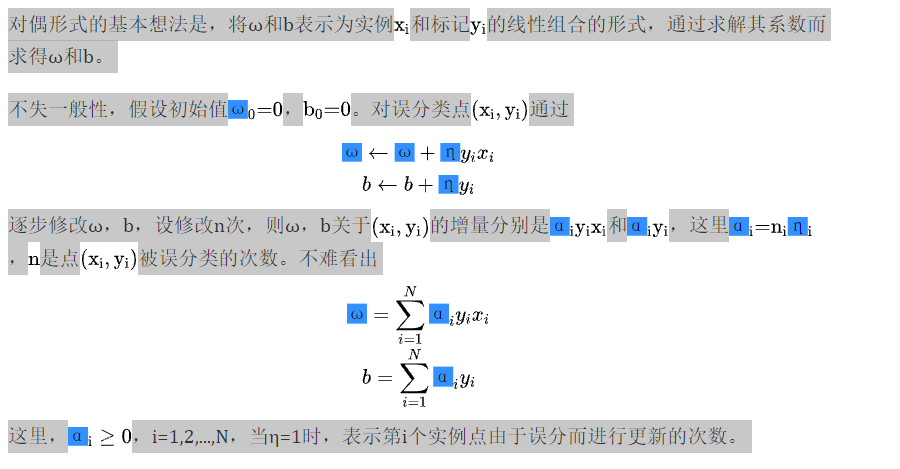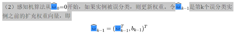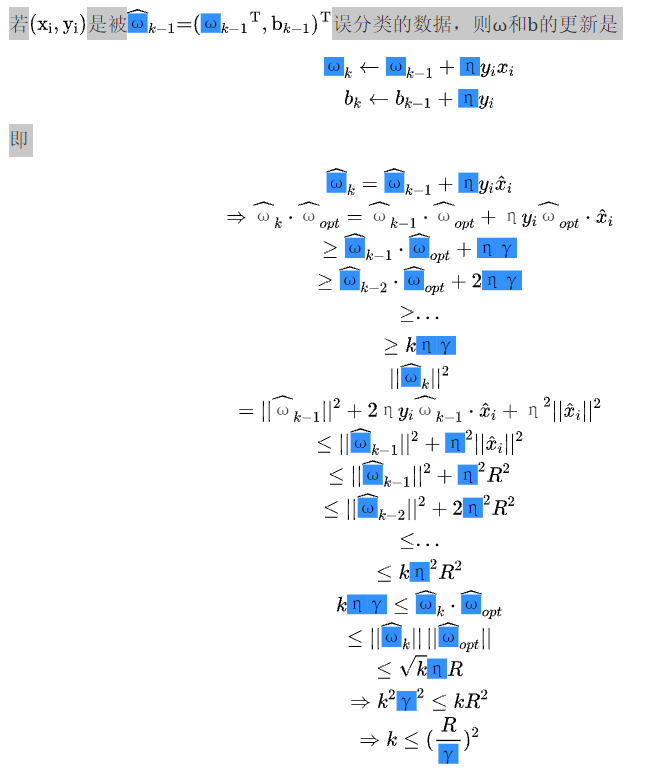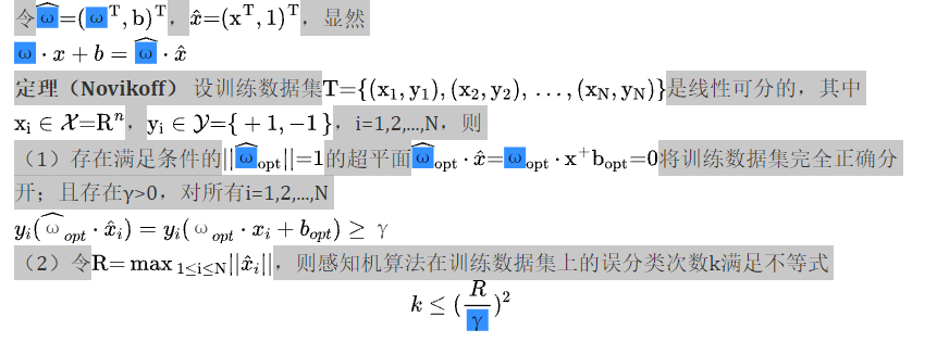 (2)令,则感知机算法在训练数据集上的误分类次数k满足不等式