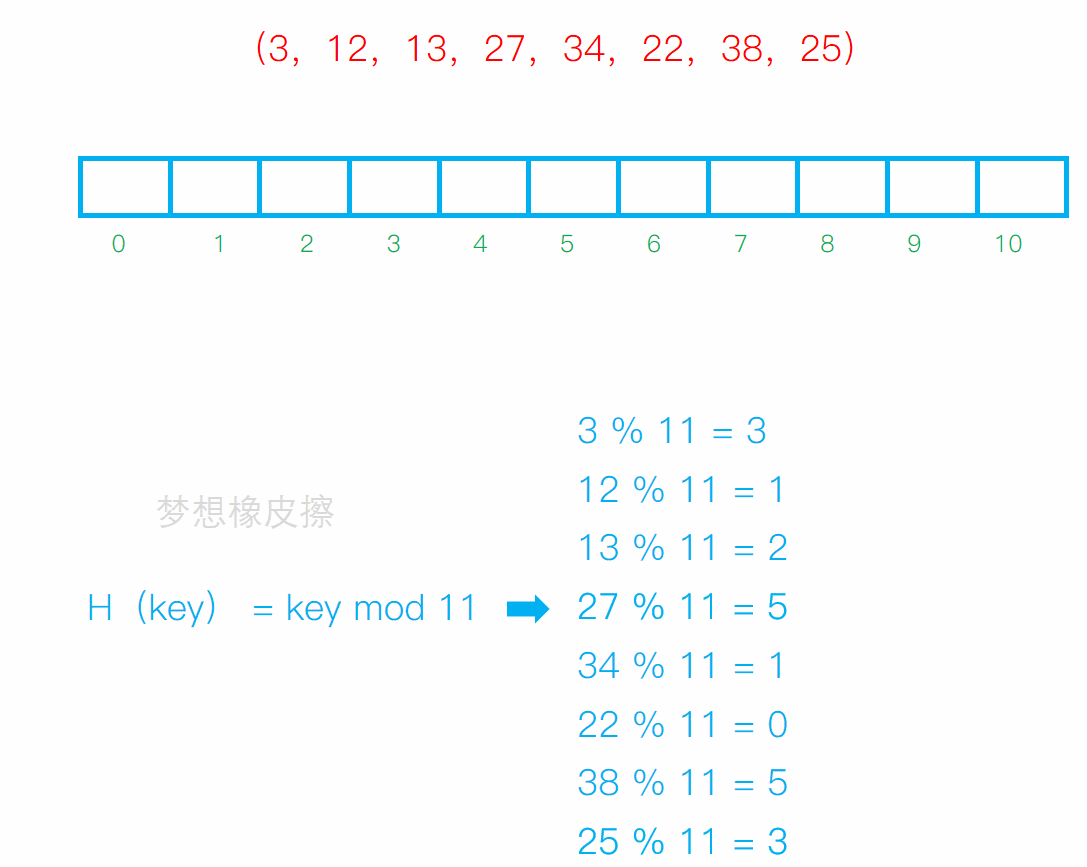 设散列表长度为11,散列函数H(key) = key mod 11(mod为求余运算),给定的健值序列为(3,12,13,27,34,22,38,25),试画出采用线性探测法解决冲突时所构造的散列表,并求出在等概率的情况下查找成功时的平均查找长度。