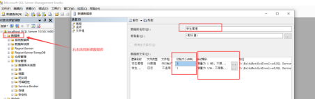 - 使用SQLServer管理平台创建“学生管理”数据库