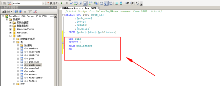 - 利用 SQL Server 2008管理平台访问系统自带的publishers数据库