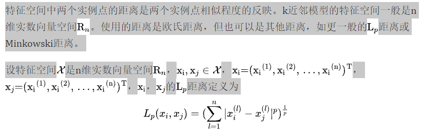 k近邻法使用的模型实际上对应于对特征空间的划分。模型由三个基本要素——距离度量、k值的选择和分类决策规则决定。