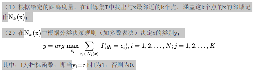 k近邻法中的分类决策规则往往是多数表决,即由输入实例的k个邻近的训练实例中的多数类决定输入实例的类。