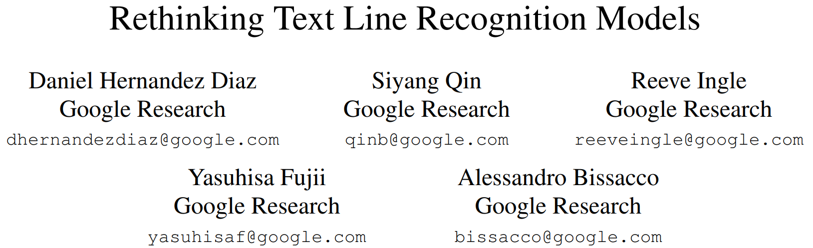 本文还考虑了在样本分布中存在长图像所产生的问题。至少有两个新的方面需要考虑,效率和性能。由于图像长度的二次缩放,长图像会影响使用自注意力编码器的模型效率。本文证明,通过对图像进行分块,CTC模型可以解决这个问题,而不会造成性能损失。对固定最大宽度图像的训练会影响使用变压器解码器的模型对较长图像识别的性能。通过将图像大小调整到训练的宽度,虽然不能完全消除,但可以缓解此问题。
