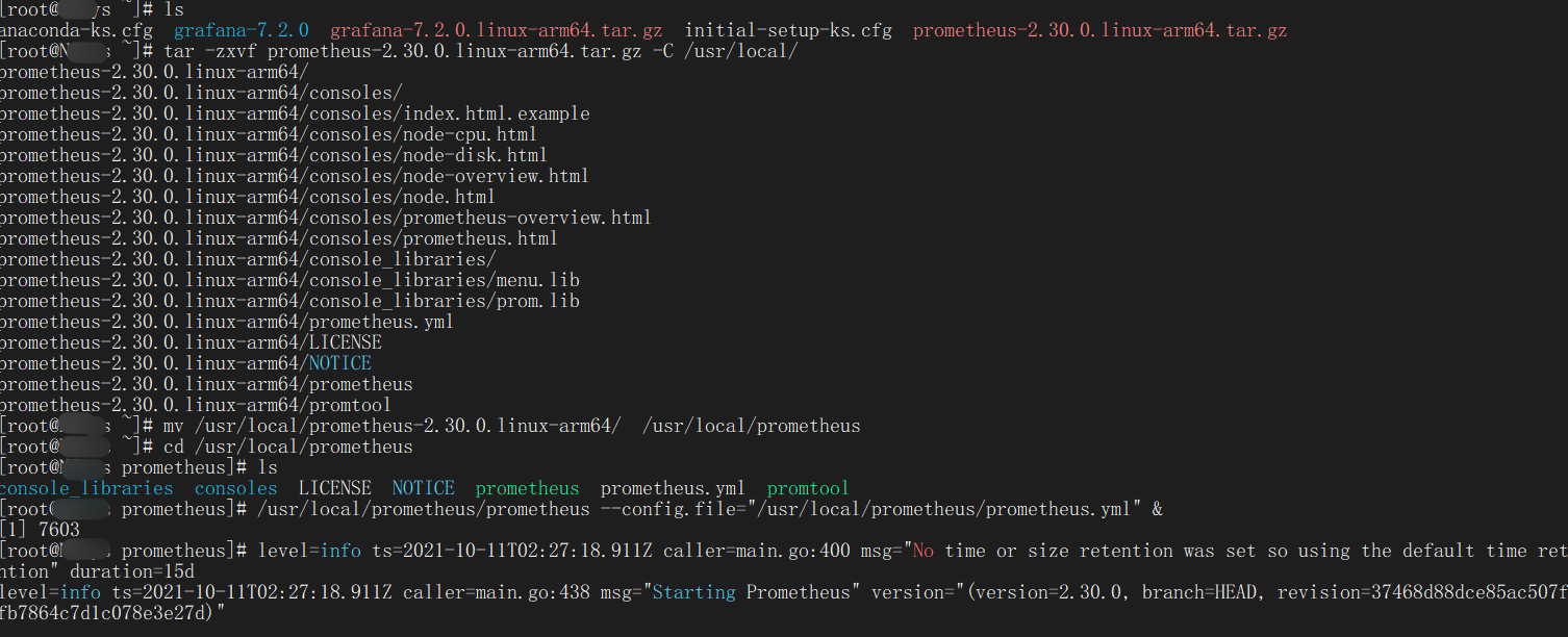 tar -zxvf prometheus-2.30.0.linux-arm64.tar.gz -C /usr/local/