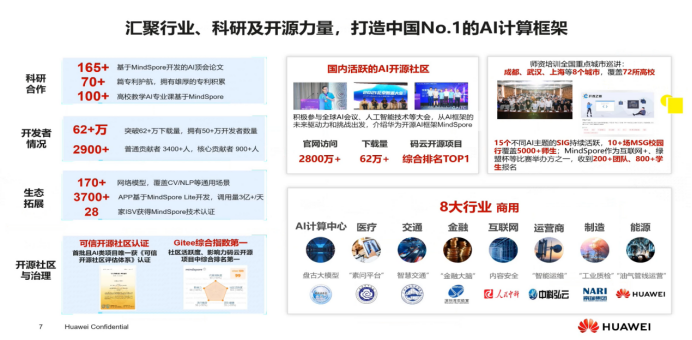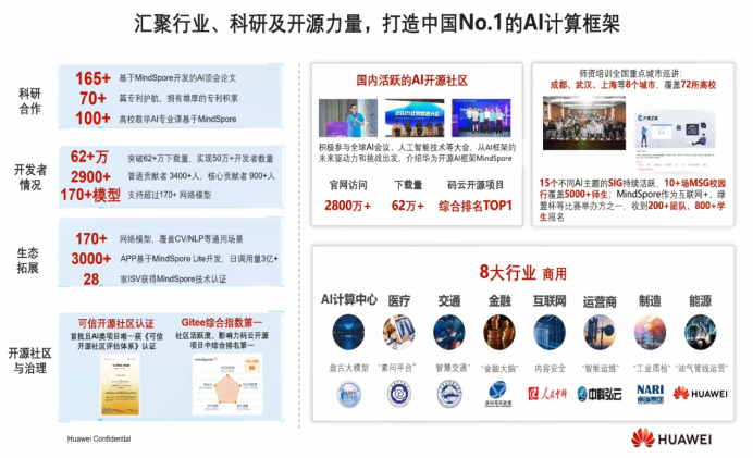 - 对我国在AI领域实现产业领先、避免AI框架被卡脖子作出华为公司的贡献。