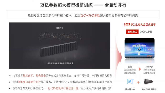 - 原创多维度自动混合并行核心技术,支持百亿~万亿参数超大模型在K级集群自动并行训练