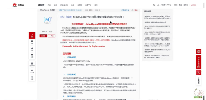 - 不定期举办昇腾技术沙龙,邀请华为技术人员举行技术讲座。