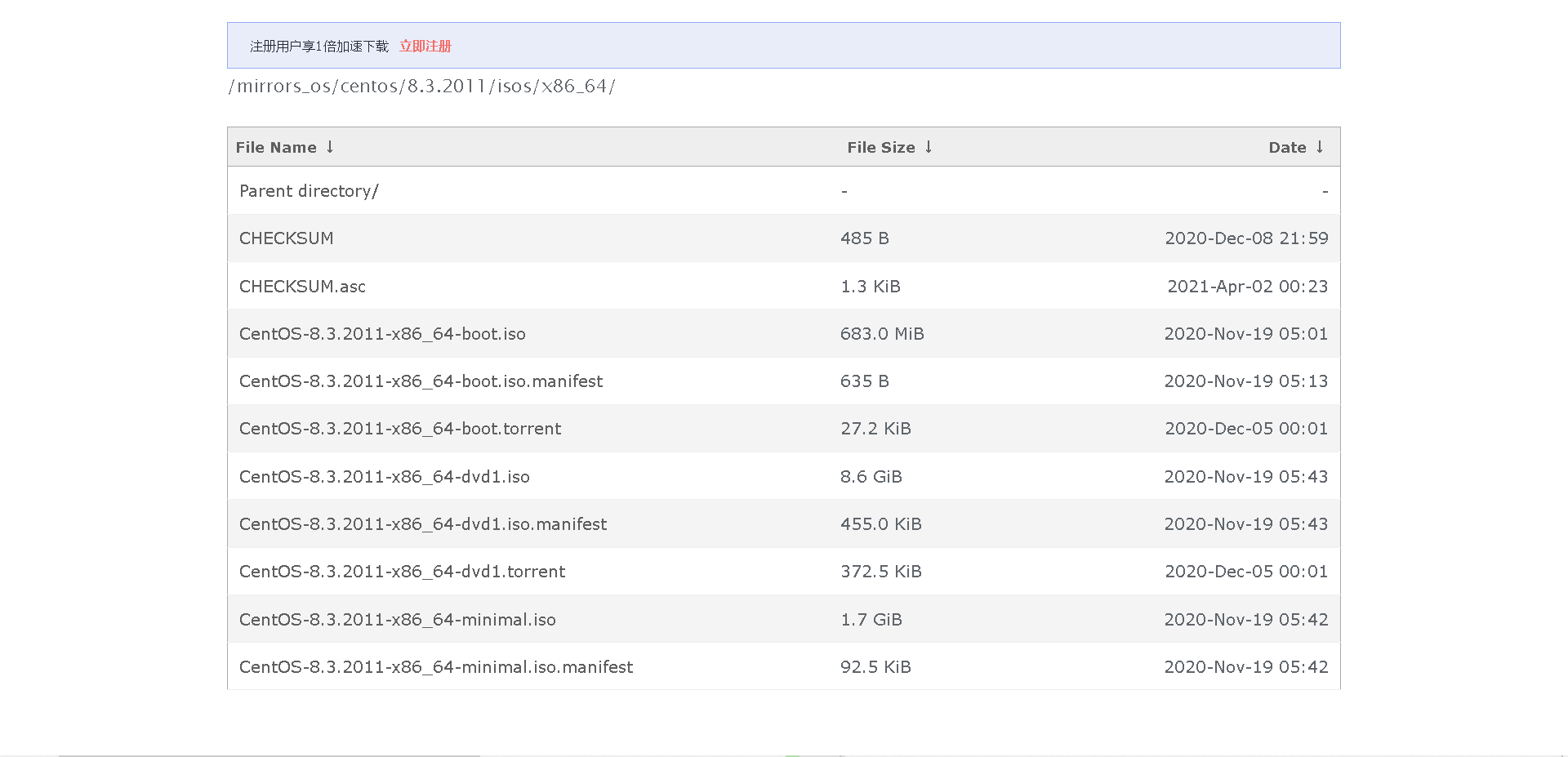 华为开源镜像站http://mirrors.huaweicloud.cn/centos/8.3.2011/isos/x86_64/