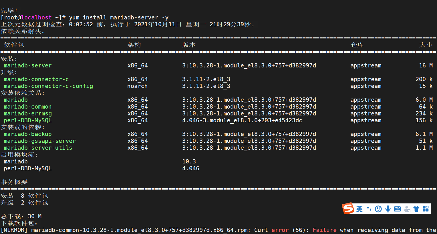 yum install mariadb-server -y