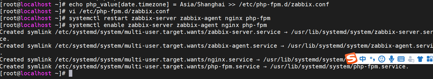 echo php_value[date.timezone] = Asia/Shanghai >> /etc/php-fpm.d/zabbix.conf