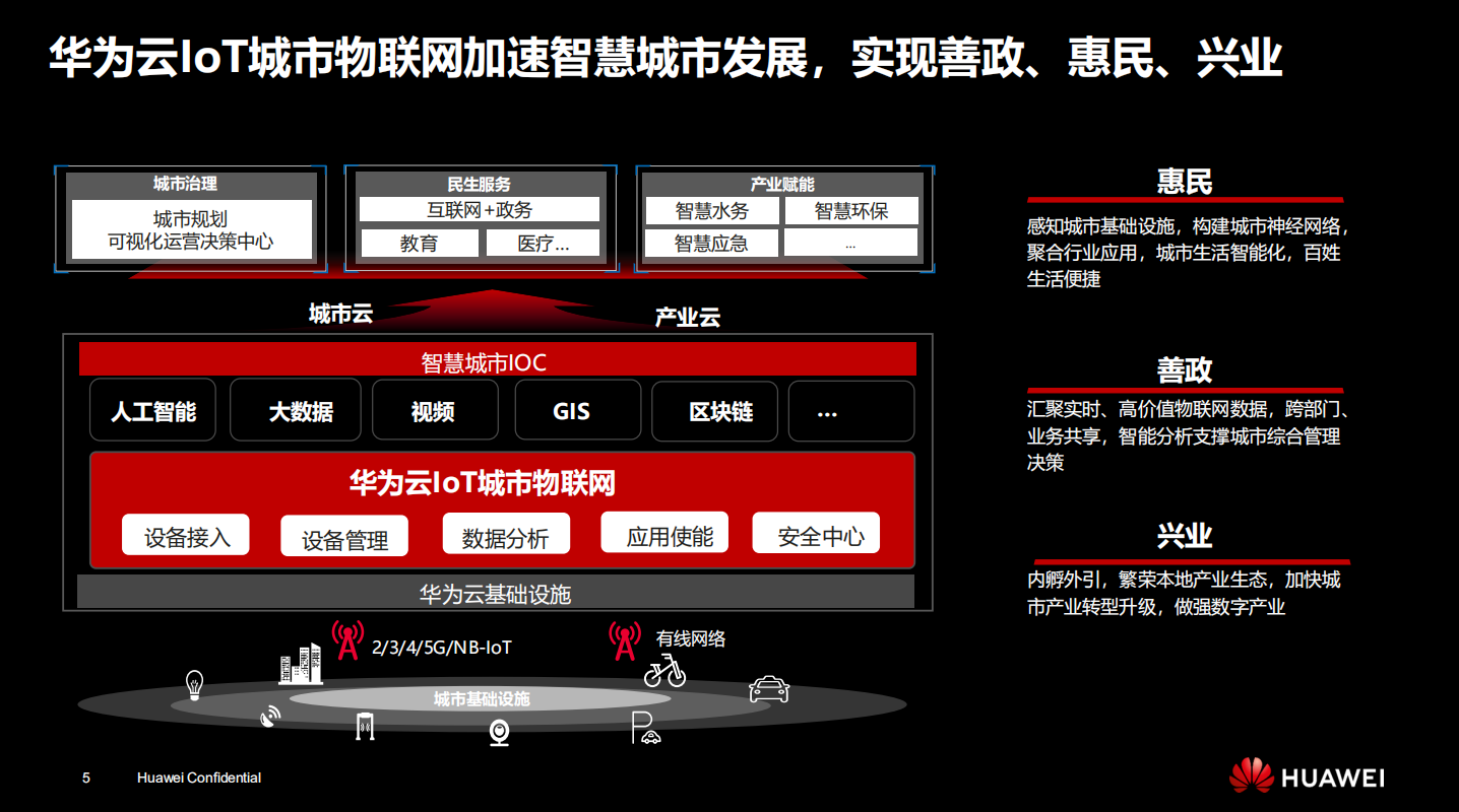 华为云loT城市物联网加速智慧城市发展,实现善政、惠民、兴业。