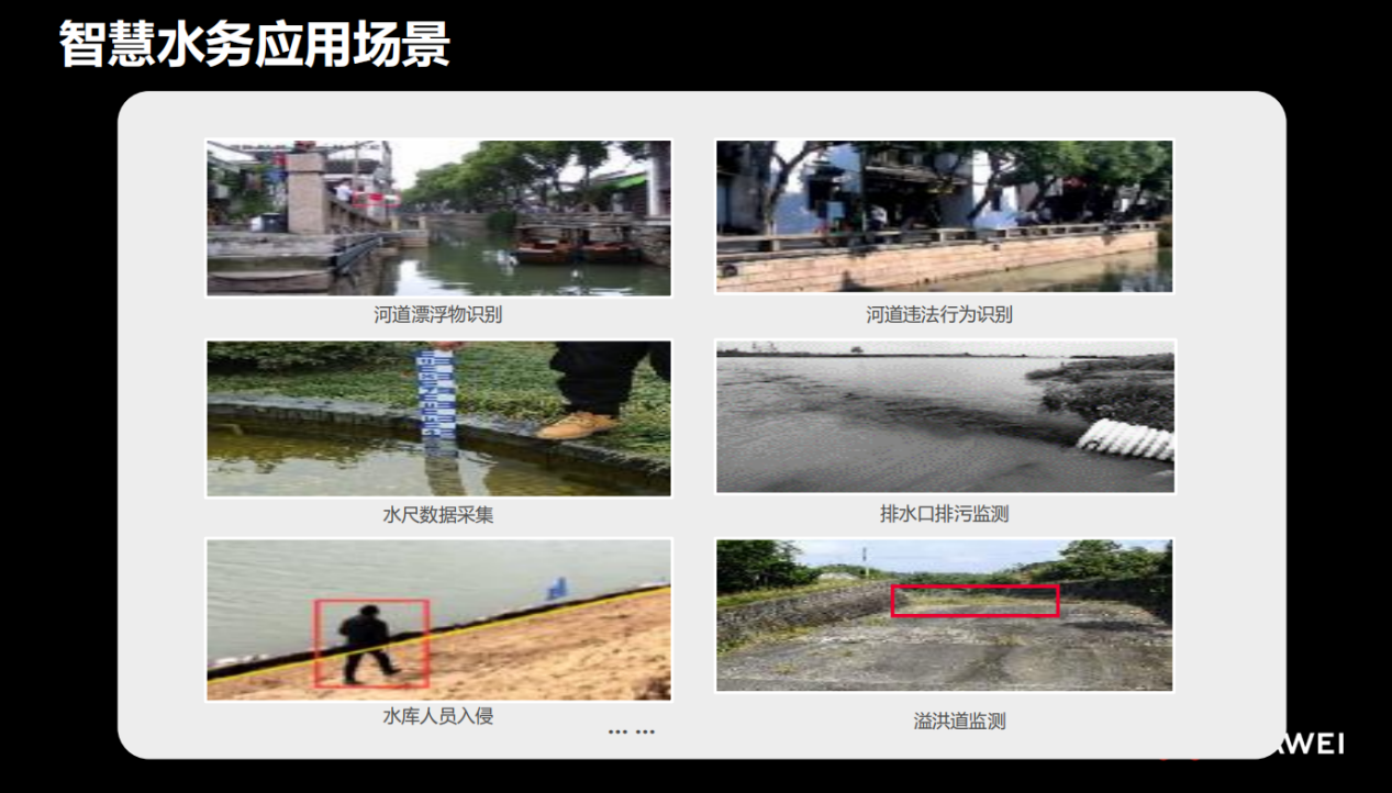 华为云AI智能,结合行业know-how ,对河道状态监测&实时告,街灯用电精准调度、公共车位占用等复杂分析。