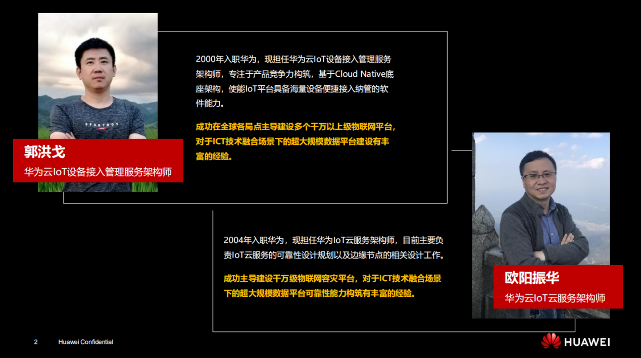 2004年入职华为,现担任华为loT云服务架构师,目前主要负责loT云服务的可靠性设计规划以及边缘节点的相关设计工作。