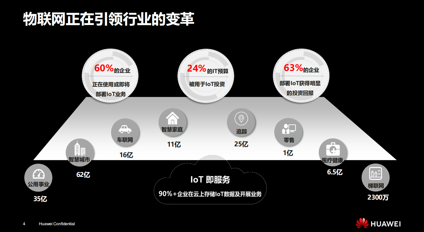 现在已经有60%的企业正在使用或即将部署lot业务,24%的IT预算被用于lot投资,63%的企业部署loT获得明显的投资回报。这说明了物联网正在引领行业数字化转型与创新变革。