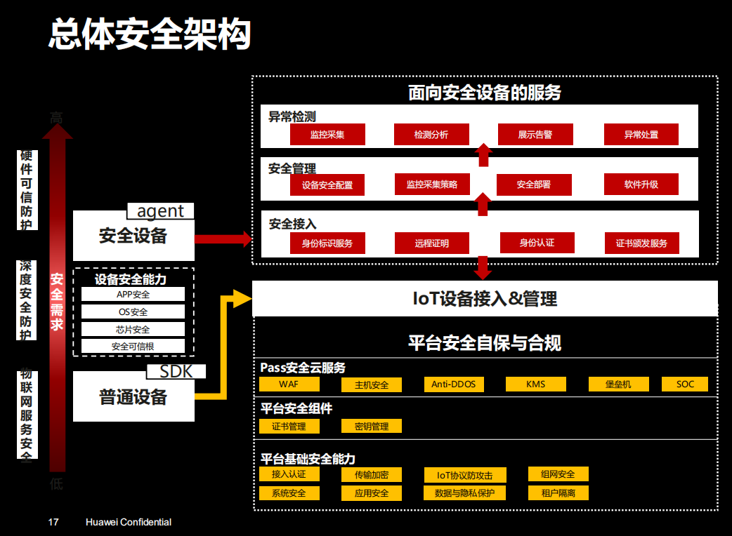 3. 对应设备安全需求的由低到高,loT提供不同安全级别的服务,包括物联网服务安全、深度安全防护、硬件可信防护;