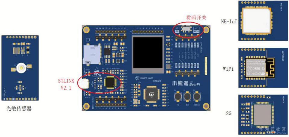 硬件:小熊派开发板、智慧路灯传感器扩展板、USB 数据线、通信模组(本文选用的是NB-IoT通信模组)