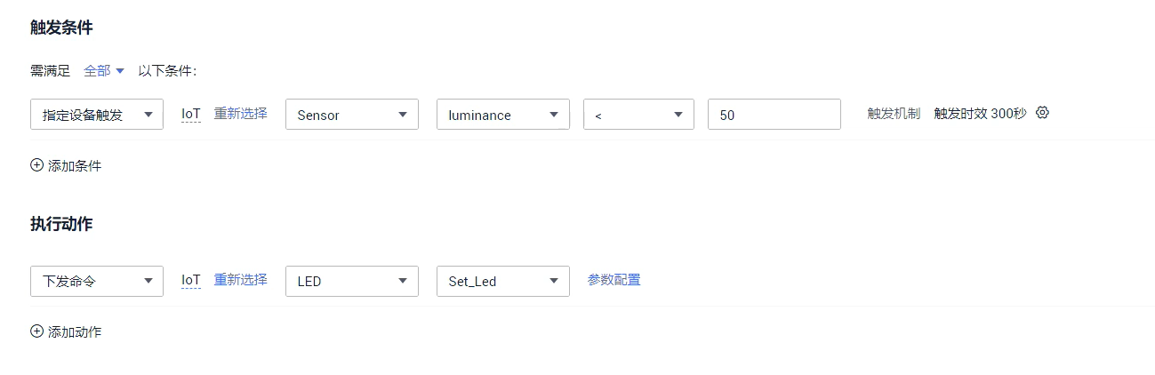 可以选择想要的触发条件和创建相应的规则机制,时效设置等,进行规则下发,这样就可以在城市的早晨和夜晚依据亮度进行自动的开关灯了,是不是很神奇呢?