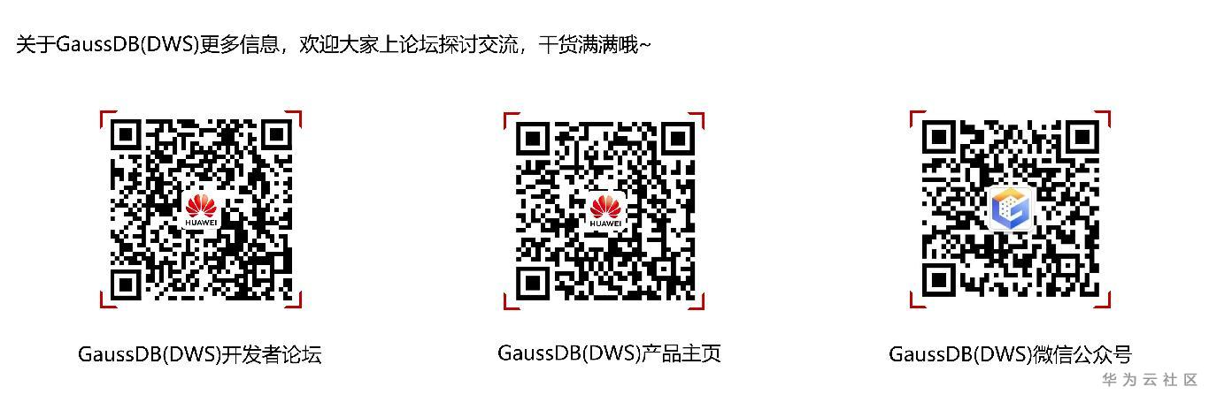 想了解GuassDB(DWS)更多信息,欢迎微信搜索“GaussDB DWS”关注微信公众号,和您分享最新最全的PB级数仓黑科技,后台还可获取众多学习资料哦~