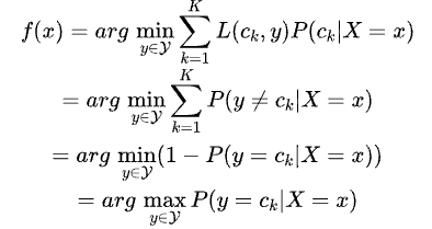 这样一来,根据期望风险最小化准则就得到了后验概率最大化准则: