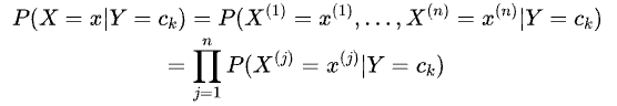 朴素贝叶斯法对条件概率分布作了条件独立性的假设。由于这是一个较强的假设,朴素贝叶斯法也由此得名。具体地,条件独立性假设是