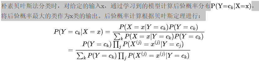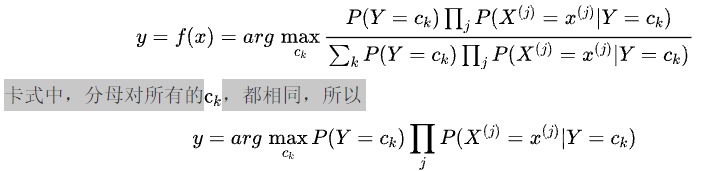 这是朴素贝叶斯法分类的基本公式。于是,朴素贝叶斯分类可表示为