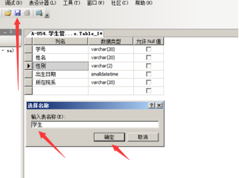 - 使用SQL Server管理平台在“学生管理”数据库中创建“学生”表