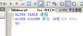 “课程”表中增加一个学分属性。 更改学分属性类型为int