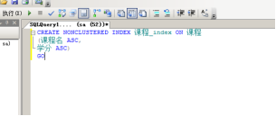 - 使用T-SQL语句为“课程”表创建一个索引名为“课程_index”的非聚簇索引