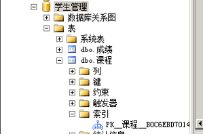 展开“学生”表,右击“索引”选项,在弹出的快捷菜单上选择"新建索引”选项