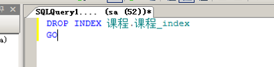 6)使用T-SQL语句将“课程”表中的索引文件“课程_index”删除