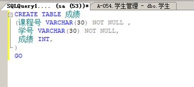 - 使用T-SQL语句在“学生管理”数据库中创建“课程”表和“成绩”表