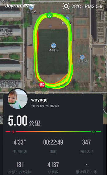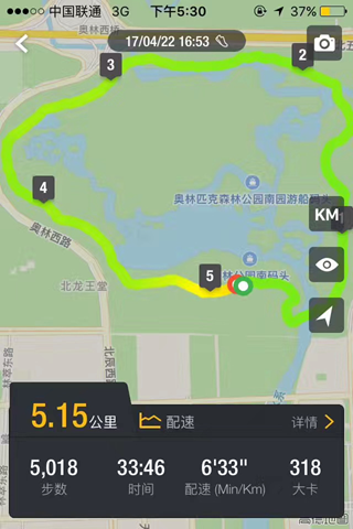 下面是最快的一次5KM跑,不过记录还停留在2年前,至今还未被自己打破