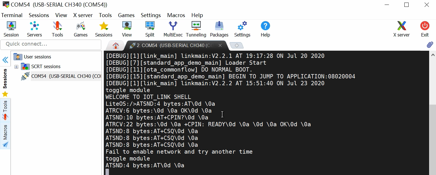 查看是否连网,也就是先看看模组中是否有上网的能力,要没有连网,后面操作就成了一顿操作猛如虎一看战绩0-5了,所以首先检查连网是所有操作的前提条件。