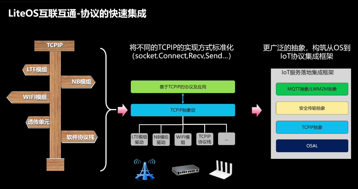 那么协议是如何被集成到LiteOS的呢?协议那么多,每个通信实体又不一样,很痛苦啊。。。
