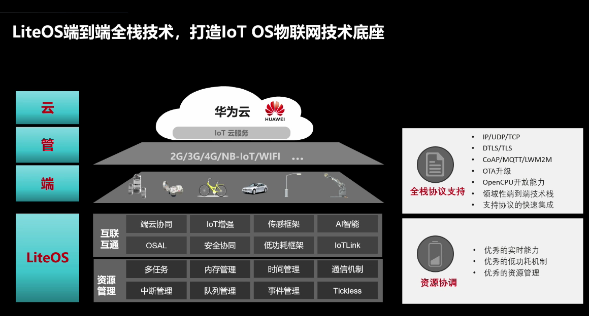 Huawei LiteOS是华为面向物联网领域开发的一个基于实时内核的轻量级操作系统。也正因为上面说的物联网技术中的存在各种各样的痛点,此时LiteOS就这么应运而生闪亮登场了,为解决各种IoT技术中的痛点而诞生。