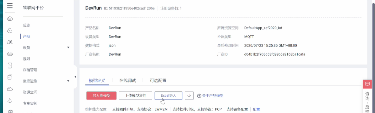 通过设备中的创建产品创建我们所需要的产品。