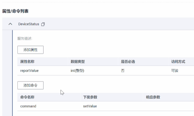 在属性/命令列表中添加所需要的功能动作,本案例以上报操作和接收操作为例。