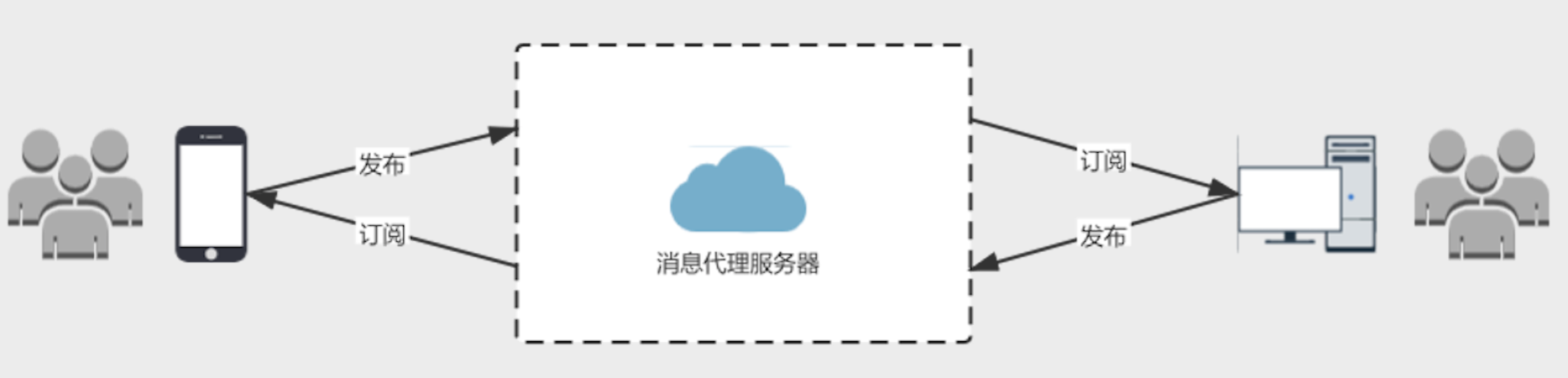 MQTT工作模式是基于客户端和服务端通讯模式运作的,在整个通讯过程中,有三种身份:发布者(Publisher)、代理服务器(Broker)、订阅者(Subscriber)。其中,消息的发布者和订阅者都是客户端,它们之间的消息是通过代理服务器转发的,消息发布者可以同时是订阅者。