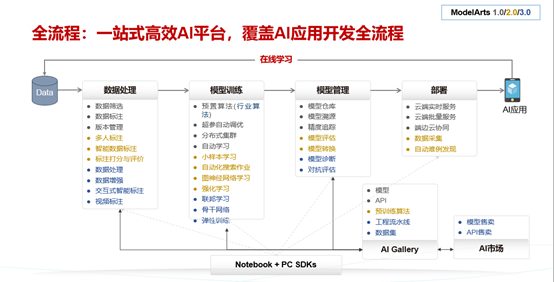 AI开发流程一般包含四个主要流程,数据处理,模型训练,模型管理,服务部署