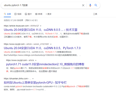 我们可以在谷歌上搜索到pytorch 1.7.0环境安装方式