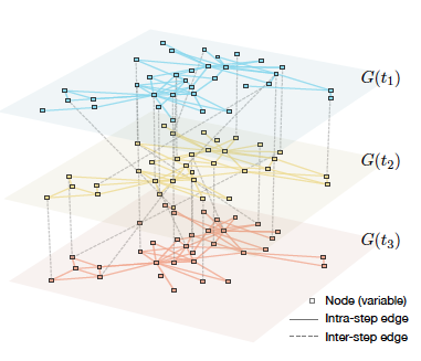 可被用来建模变量之间的动态相关性。动态图可以看作一系列静态图组成的时间序列。如下图所示。