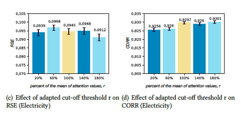 在四个公开数据集,4个预测horizon上,METRO-attn相对于SOTA模型获得了更好的RSE和CORR。
