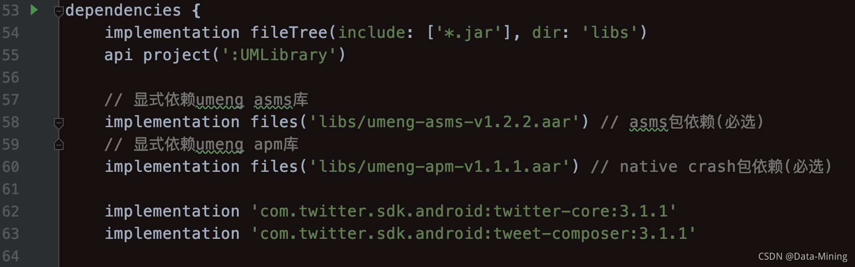 implementation "com.umeng.umsdk:common:9.4.2" // 版本号(必选))