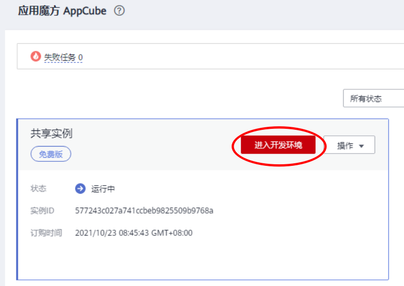进入appcube 控制台 , 点击 “进入开发环境”