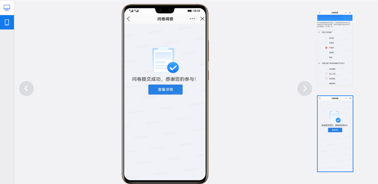 “预览”提供问卷 电脑和手机端效果图。