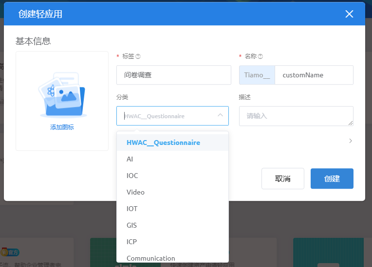 填写标签,名称,描述 信息,根据自已需求选择分类,填写完成后点击“创建”