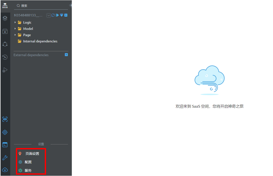 点击创建后进入 “SaaS空间” 界面,可以在这里做“页面设置”和“配置”各种操作。