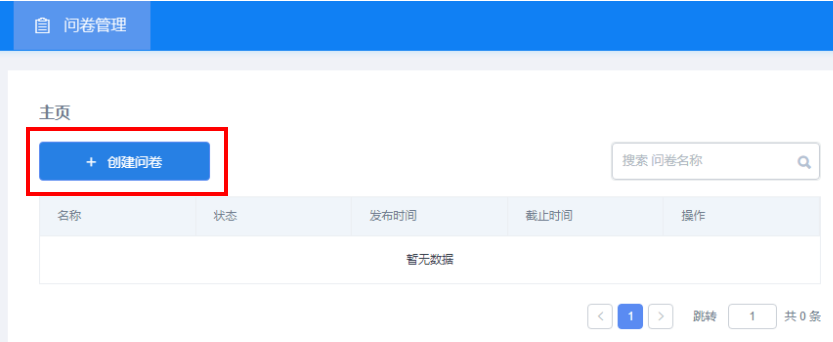进入“问卷管理”主面后点击“创建问卷”开始创建问卷
